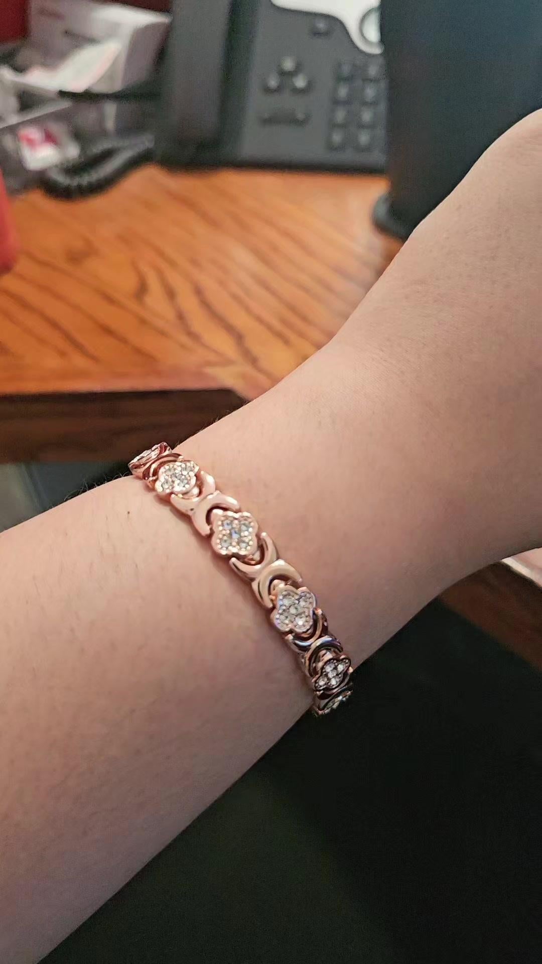 Perfect Fit. All-Day comfort.Tired of bracelets that slip or pinch? The Flower Copper Bracelet features an upgraded folding clasp and includes an adjustment tool for a custom, secure fit-essential for effective copper ion transfer.With its elegant rose gold finish and 8.66" length, it complements any outfit and stays comfortably in place all day.